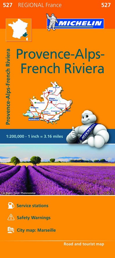 La edición actualizada del mapa Regional Provence-Alps-French Riviera, editado a escala 1/200 000, incorpora la señalización de estaciones de servicio en autopistas y en las principales carreteras, alertas de seguridad, así como el plano de la ciudad de Marsella.