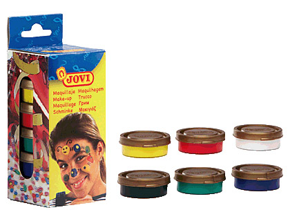 Caja con 6 botes de maquillaje en crema (blanco, rojo, amarillo, verde, azul y negro) de 8ml.