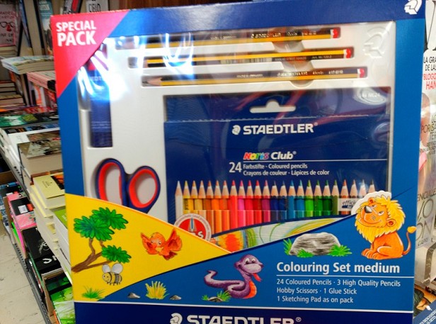 • SET STAEDTLER PARA COLOREAR 61TCPL3 24 PINTURAS COLOR + 3 NORIS N.2 + TIJERAS + PEGAMENTO + BLOCK DIBUJO