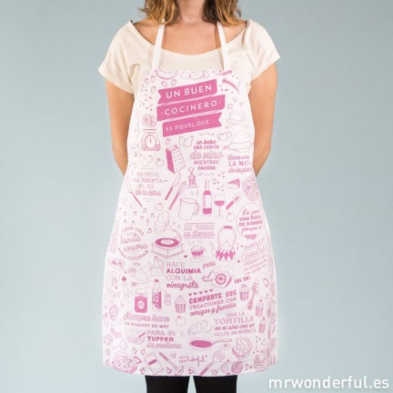 La perfección de una croqueta siempre ha sido un misterio más inexplicable que el Triángulo de las Bermudas. Y en Mr.Wonderful no podemos hacer que te queden crujientes por fuera y cremosas por dentro. Pero en lo sí que podemos ayudarte es que tengas un look de súper chef aunque sea tu primera vez delante de los fogones. Con este delantal impresionarás a tus comensales y, además, no te mancharás.