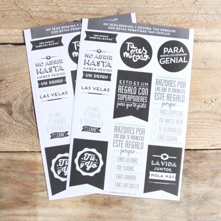 • PACK 2 HOJAS DE PEGATINAS WONDER PARA REGALOS B/N