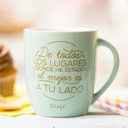 No será que no he recorrido mundo. He subido montañas, he nadado en mares, hasta he visitado los fiordos noruegos y me he paseado por la Conchinchina. Pero te puedo asegurar que de todos los sitios donde he estado, el mejor es a tu lado.Taza de porcelana que puede meterse en el microondas y el lavav...