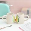 - Set de dos tazas de cerámica con forma de dos mitades de aguacate; sus formas encajan entre sí, lo que las hace más divertidas.