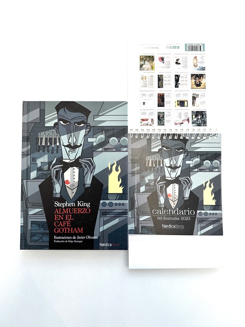 Pack que incluye la edición ilustrada de Almuerzo en el café Gotham, de Stephen King, y el calendario del ilustrador 2023
