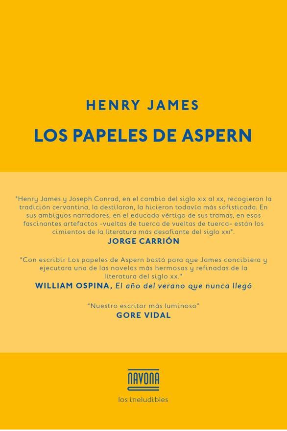 "Con escribir Los papeles de Aspern bastó para que James concibiera y ejecutara una de las novelas más hermosas y refinadas de la literatura del siglo XX". WILLIAM OSPINA