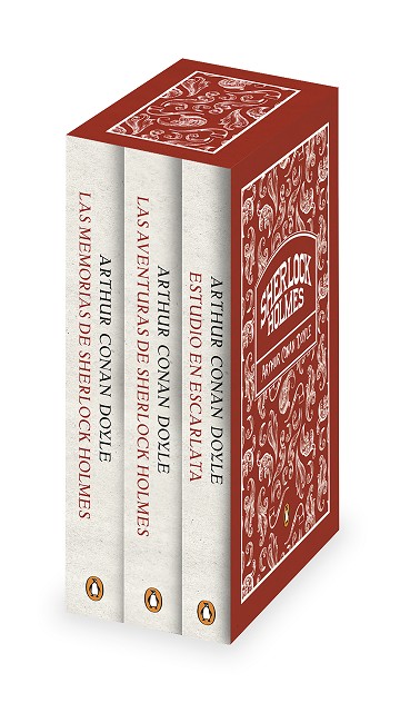 En este estuche único figuran tres obras fundamentales de Sherlock Holmes, el detective más famoso de la literatura. En Estudio en escarlata vemos su primer caso, en el que se interna por las callejuelas de Londres con ayuda de Watson, tras las misteriosas pistas que deja un asesino sediento de venganza. Por su parte, Las aventuras de Sherlock Holmes y Las memorias de Sherlock Holmes reúnen los relatos breves del emblemático personaje.