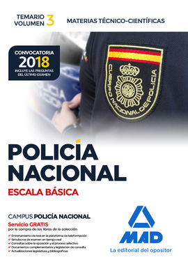 • POLICÍA NACIONAL ESCALA BÁSICA TEMARIO VOLUMEN 3 MATERIAS TÉCNICO-CIENTÍFICAS