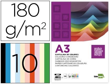 • Cartulina liderpapel a3 180g/m2 10 colores surtidos paquete 100 hojas.