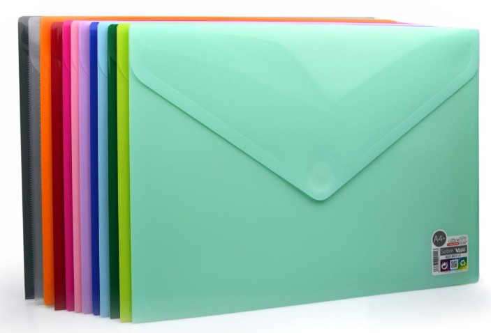 Sobre Apaisado con cierre V-lock extra grande.Tamaño A4+ Colorline.Textura alto brillo exterior con interior en interlineado exclusivo.Tamaño: 24 x 33.5 cmMaterial: Polipropileno 100% reciclable.Disponible en 12 Colores Nuevos.