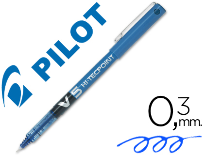 Rotulador pilot punta aguja v-5 azul 0.5 mm.Rotulador de tinta líquida, suave escritura. Más de dos kilómetros de escritura gracias a su sofisticado controlador de tinta. Tinta soluble al agua. Con capuchón y visor de tinta. Diámetro de la bola 0,5 mm. Trazo de 0,3mm.