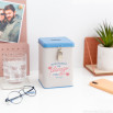 - Hucha de aluminio con cierre con candado y mensaje de amor.