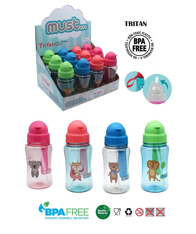 • CANTIMPLORA TRITAN CON CAÑA 350 ML 4 MODELOS PARA GUARDERIA