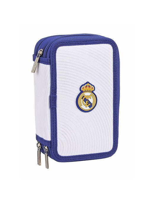 Contiene 36 piezas : goma, lápiz de grafito, bolígrafo azul, sacapuntas, regla azul grabada, y semicírculo (1er compartimento), 16 colorines de madera (2º compartimento). 14 rotuladores de colores (3º compartimento). 125x55x195 mm; 5,5L