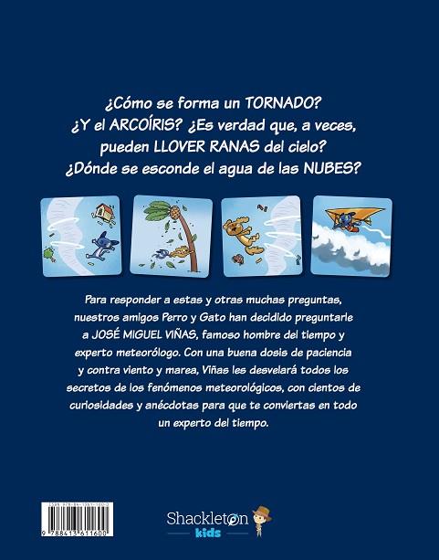 Para responder a estas y otras muchas preguntas, Perro y Gato han decidido preguntarle a José Miguel Viñas, famoso hombre del tiempo y experto meteorólogo. Con una buena dosis de paciencia y contra viento y marea, Viñas les desvelará todos los secretos de los fenómenos meteorológicos, con cientos de curiosidades y anécdotas para que te conviertas en todo un experto del tiempo.