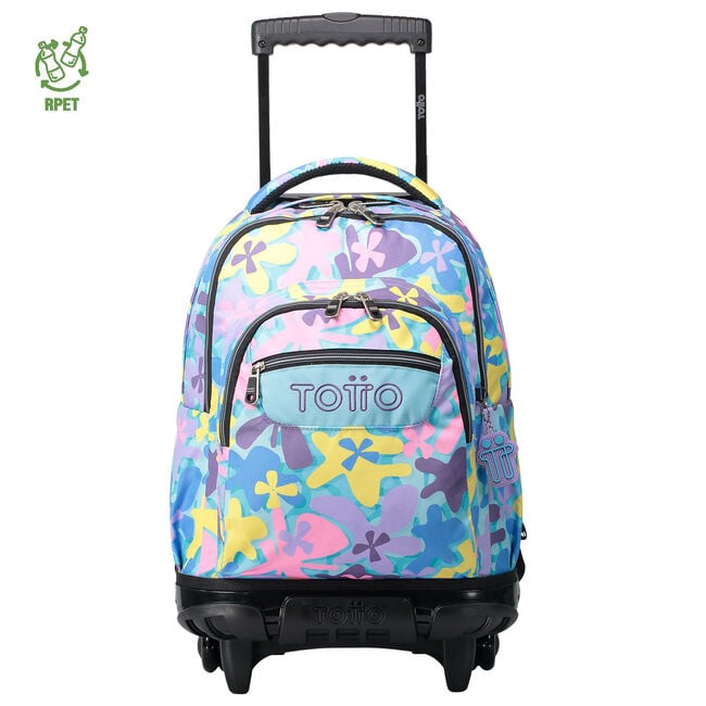 • MOCHILA TOTTO CON RUEDAS BOMPER RENGLONES FLORES HAWAIANAS 6JS