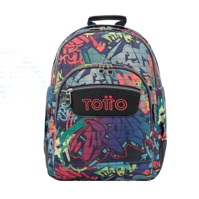 • MOCHILA ESCOLAR TOTTO RAYOL GRAFFITI 6JO - ESQUINAS REFORZADAS