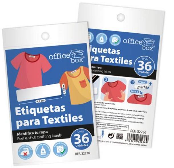• ETIQUETAS PARA TEXTILES 4.5X1.2cm BOLSA CON 36 UN