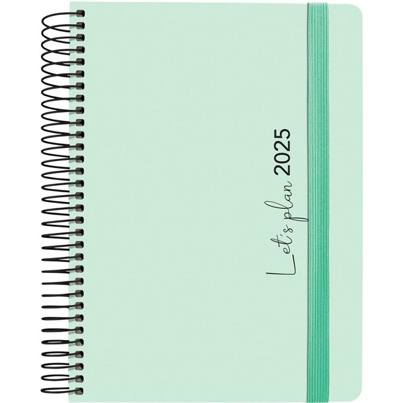 • AGENDA 2025 GRAFOPLAS COLORS 15X21CM DÍA PÁGINA SOFT ESPIRAL METALICA CUATRILINGUE VERDE AGUA