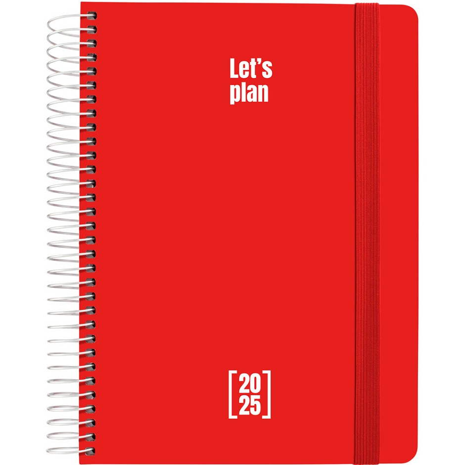 • AGENDA 2025 GRAFOPLAS PP 15X21CM DÍA PÁGINA ESPIRAL METALICA ROJO