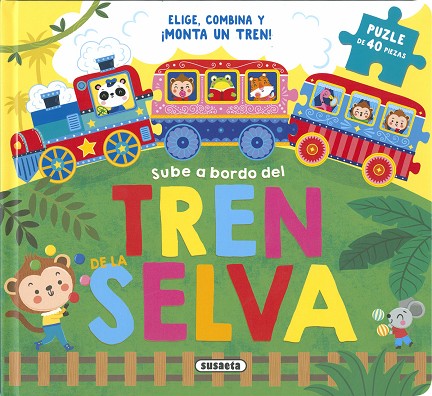 ¡Sube a bordo del tren de la selva! Los animales cogen el tren para irse de vacaciones. ¿Qué lugares van a visitar? Averígualo con este precioso libro-puzle. Extrae las piezas, monta la locomotora y los vagones y únelos para formar un fantástico tren.