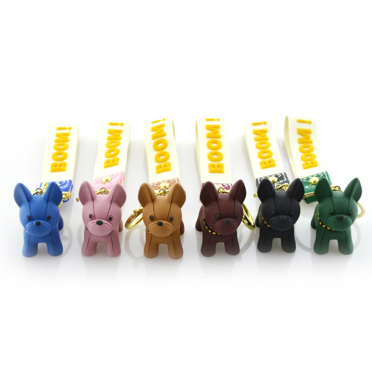 Llaveros metálicos con anilla de 3 cm. Con mosquetón metálico En blíster individual 6 Colores diferentes: azul, rosa, beige, burdeos, negro y verde. Medidas aproximadas: 4,5 x 5 x 2,5 cm.