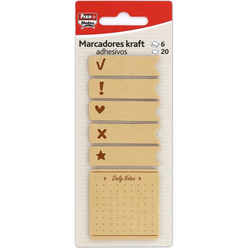 • PACK 6 MARCADORES 20H ADHESIVOS FIXO BANDERITAS KRAFT LISO DAILY