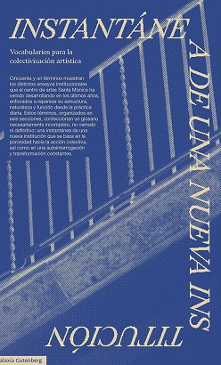 Cincuenta y un términos muestran los distintos ensayos institucionales que el centro de artes Santa Mònica ha venido desarrollando en los últimos años, enfocados a repensar su estructura, naturaleza y función desde la práctica diaria. Estos términos, organizados en seis secciones, confeccionan un glosario necesariamente incompleto, no cerrado ni definitivo: una instantánea de una nueva institución que se basa en la porosidad hacia la acción colectiva, así como en una autointerrogación y transformación constantes.