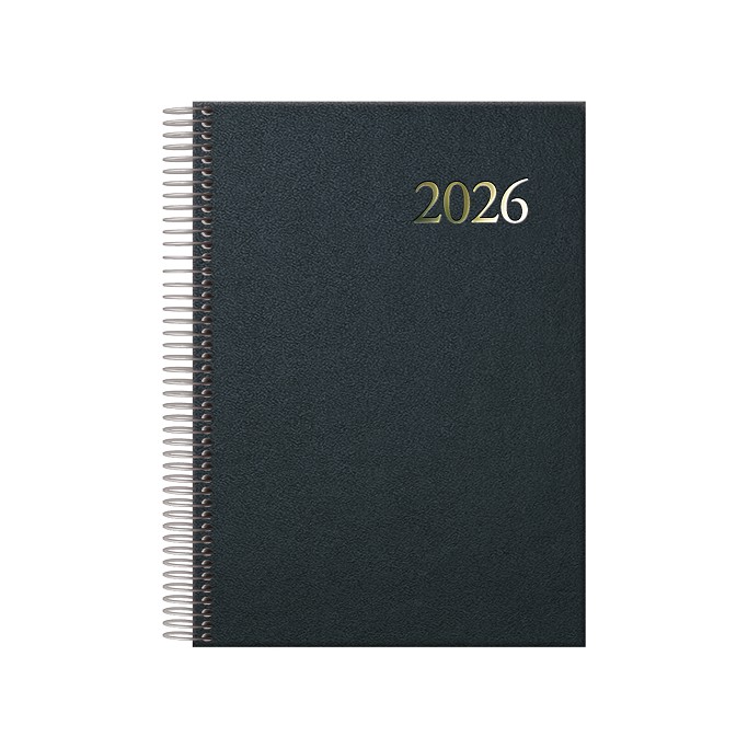 Agenda anual. Cubierta realizada en material vinílico con cartón contracolado de primera calidad. Interior con sábado y domingo en la misma página, impresa a un color en papel offset blanco de 70 grs., con 336 páginas. Datos personales, Calendario trienal, Planning del año, Páginas para anotaciones y Listín. Cabeceras en 5 idiomas (Castellano, Catalán, Gallego, Euskera y Portugués), Onomástica, Días transcurridos y restantes, Semana, Calendarios del mes actual y siguiente.
