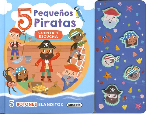 ¿Cuántos piratas hay? Cuéntalos y escucha el sonido que hacen pulsando los botones de silicona mientras lees este precioso libro de cartón. ¡Un libro infantil muy divertido!