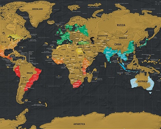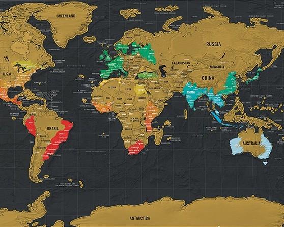 Mapa del mundo de viaje para rascar los paises y sitios que hayamos visitado, ideal para saber los lugares donde hemos ido y aquellos que aún nos faltan por descubrir.