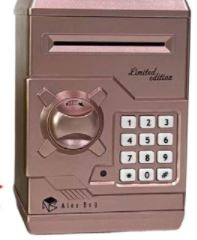 Hucha caja fuerte muy practica permite guardar lo que quieras de forma segura. Se escucha sonido original con la apertura de puerta . Tiene sistema automatico para recoger billetes y clave para su apertura. Modelo: "Limited Edition Gold".