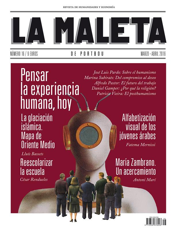 El decimosexto número de La Maleta de Portbou, revista de Humanidades y Economía dirigida por Josep Ramoneda, incluye un dossier llamado “Pensar la experiencia humana, hoy” que recoge varias conferencias pronunciadas en L’Escola d’Humanitats de La Maleta de Portbou y la Obra Social “la Caixa”, y en las que los autores José Luis Pardo, Marina Subirats, Alfredo Pastor, Daniel Gamper y Patricia Vieira hablan, respectivamente, del futuro del humanismo, las relaciones personales, el trabajo, la religión y el posthumanismo. Además, César Rendueles escribe sobre la necesidad de reescolarizar la escuela, Lluís Bassets ofrece un mapa de Oriente Medio tras las primaveras árabes, Fatema Mernissi habla de la importancia de la alfabetización visual de los jóvenes árabes, Paolo Flores d’Arcais de los tabúes a la hora de tratar el tema del terrorismo islámico y Josep M. Martí del star system audiovisual. El Relato, centrado en la figura de la pensadora María Zambrano, corre a cargo de Antoni Marí, y la Galería, comisariada por Ramiro Villapadierna, es una muestra del trabajo de la nueva generación de fotoperiodistas españoles. Esta vez, Enric Puig Punyet entrevista a la filósofa y pionera en estudios europeos sobre la mujer, Rosi Braidotti.