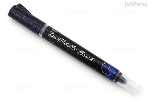 • PENTEL DUAL PINCEL TINTA BRILLANTE CON PULSADOR TRASERO VIOLETA + AZUL METALICO