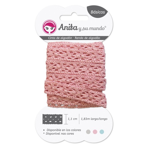 • CINTA DE ALGODÓN PUNTILLA ROSA 1.1CM DE ANCHO 1.83M DE LARGO