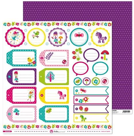 • PAPEL SCRAP 30,5X30,5CM ETIQUETAS FANTASIA