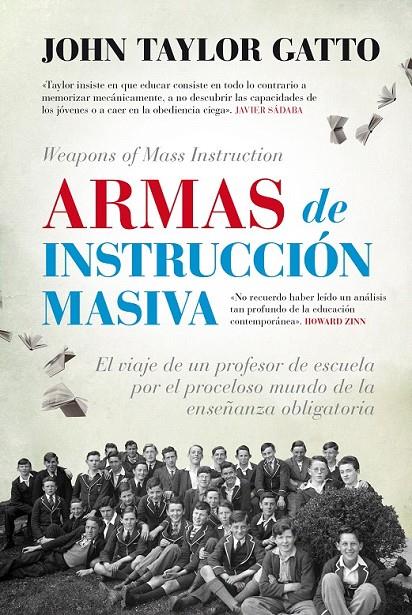 Este libro demuestra que el daño que algunos colegios causan es racional y deliberado. La función real de la pedagogía, afirma Gatto, es hacer que la población sea manejable y liberar de la obligación de cuidar a sus hijos a los trabajadores adultos, de tal modo que estén libres para alimentar la economía industrial y formar a las generaciones futuras en la obediencia al Estado. Gatto revela que los colegios de la Ivy League no producen los mejores licenciados, que algunos de los más ricos emprendedores del mundo son personas que abandonaron el instituto y que Thomas Edison, John D. Rockefeller y Andrew Carnegie no terminaron la escuela elemental. Lleno de ejemplos de personas que escaparon a la trampa de la escolarización obligatoria, Armas de instrucción masiva demuestra que para que florezcan las potencialidades que cada uno posee se requiere un modo diferente de crecer y aprender, uno que Gatto llama aprendizaje de código abierto.