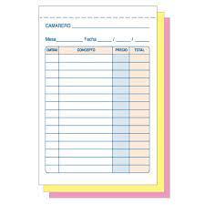 Talonario comandas camareros tamaño octavo, 3 copias, triplicado. 50 juegos de 3 hojas