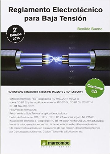 Versión consolidada según el RD560/2010 de adecuación a la Ley Ómnibus, y según el RD 1053/2014 que incluye la nueva ITC-BT 52 de Vehículos Eléctricos y modifica las ITC-BT 04, ITC-BT 05, ITC-BT 10, ITC-BT 16 e ITC-BT 25. REBT con la actualización de las ITC-BT 06 e ITC-BT 07 sobre Redes de Distribución conforme UNE 211435, en relación al cálculo de conductores en líneas eléctricas aéreas y subterráneas. Se mantienen las tablas de la antigua norma UNE 20.435 anulada y sustituida, pero de posible utilización hasta resolución del Ministerio competente. Además, este libro contiene: ' Resumen y actualización de normas UNE Para instrucciones como: ITC-BT 35 'Establecimientos agrícolas y hortícolas', ITC-BT 39 'Cercas eléctricas para el ganado', ITC-BT 41 'Caravanas y parques de caravanas', ITC-BT 42 'Puertos y marinas', ITC-BT 50 'Saunas', el REBT se remite a una norma UNE que resulta necesario conocer. Así mismo en la ITC-BT 19 'Prescripciones generales' se aplica la norma UNE 20.460-5-523 actualizada en las tablas de la instrucción y se amplía información de la norma UNE relativa a métodos de instalación y corrientes armónicas. ' Resumen de la Guía Técnica de aplicación del REBT No tiene carácter vinculante. Establece aclaraciones a conceptos del REBT tal y como indica el artículo 29 del mismo. Esta edición contiene un resumen de la Guía Técnica de aplicación actualizada, con los datos más importantes, pudiéndose consultar el texto completo de la Guía en el CD. ' Aclaraciones, resúmenes, ejemplos, esquemas, fórmulas, enlaces web y dibujos Con objetivo de agilizar la comprensión de la norma y encontrar de una manera rápida los datos más relevantes, se subraya el texto y se incluyen notas y figuras de autor. En el CD se adjunta el REBT y las ITC publicadas en el BOE. ' Vehículos Eléctricos Nueva ITC-BT 52 y Real Decreto 1053/2014 por el que se establecen los requisitos y condiciones técnicas básicas de la infraestructura necesaria para posibilitar la recarga efectiva y segura de los Vehículos Eléctricos. ' Consulta de novedades del REBT Consulta recursos didácticos, novedades legislativas relevantes sobre el REBT y documentación complementaria de esta edición.