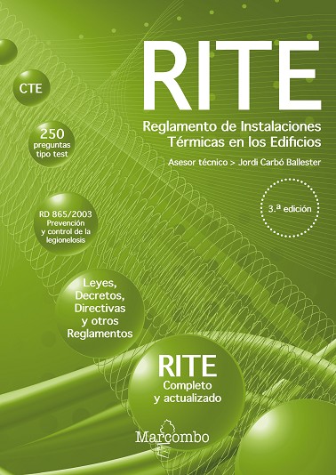 El Reglamento de Instalaciones Térmicas en los Edificios (RITE) establece las condiciones que deben cumplir las instalaciones destinadas a atender la demanda de bienestar térmico e higiene a través de las instalaciones de calefacción, climatización y agua caliente sanitaria, para conseguir un uso racional de la energía. Desde su aparición en el año 1998 y derogación el 2007, se han sucedido periódicamente eventuales modificaciones y correcciones. Con el fin de facilitar su comprensión y concentrar en un solo libro toda la información legislativa concerniente al RITE, la presente obra incluye: - El Reglamento completo con todas las modificaciones y correcciones hasta el 23 de marzo del 2021. - Una recopilación del Código Técnico de la Edificación 2020 con comentarios del Ministerio de Fomento, en lo que respecta a las partes que conciernen al RITE. - Reseñas de leyes, decretos, directivas y otros reglamentos que hacen referencia al Reglamento. - Real Decreto 865/2003, de 4 de julio, por el que se establecen los criterios higiénico-sanitarios para la prevención y control de la legionelosis. Además se incluyen 250 preguntas tipo test específicas para la obtención del Carné de Instalador Autorizado de la especialidad, que al mismo tiempo ayudarán a la comprensión y memorización del RITE. En resumen, esta obra, nacida de la experiencia docente del autor, contiene toda la información legislativa relacionada con el Reglamento de Instalaciones Térmicas en los Edificios.