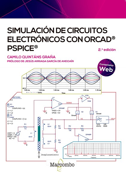 Si desea aprender a simular circuitos electrónicos y asentar sus conocimientos de electrónica mediante ejemplos prácticos de simulación, ha dado con el libro indicado. En esta segunda edición del libro Simulación de circuitos electrónicos con OrCAD® PSpice® se proporciona una detallada revisión y ampliación de los contenidos, así como una actualización a la versión 17.2 LITE. Los distintos temas abarcan desde los conceptos de simulación en la electrónica básica hasta aspectos más complejos de electrónica aplicada. Con un programa como el OrCAD PSpice, la simulación es una herramienta que contribuye a comprender de forma experimental cómo funcionan los circuitos. Se obtienen unos resultados que permiten corregir los diseños, tanto de los ejercicios de teoría como de los trabajos de laboratorio. En el capítulo 1 se presenta la simulación desde el punto de vista del diseño en la ingeniería orientada al producto, y en el capítulo 2 se introduce el paquete OrCAD 17.2 LITE, además de una descripción de sus programas, instalación y principales características. El capítulo 3 se dedica a la simulación de los sistemas digitales, desde los circuitos combinacionales hasta los microprogramados, pasando por el diseño jerárquico y la generación de estímulos. En el capítulo 4 se simulan circuitos analógicos, donde se incluyen distintas clases de dispositivos, así como amplificadores operacionales, y se realizan los diferentes tipos de análisis. Los capítulos 5, 6 y 7 se dedican, respectivamente, al modelado y la simulación mediante comandos de PSpice. También a la creación de componentes nuevos, y a los análisis avanzados, como son el de Monte Carlo o el del Peor Caso, entre otros. El capítulo 8 se ocupa de los circuitos mixtos analógicos y digitales, como son los convertidores A/D y D/A, y otros ejemplos que combinan los distintos dominios de datos analógicos, digitales o temporales. En el capítulo 9 se simulan sensores y circuitos de acondicionamiento tomando como ejemplo distintos tipos de sensores. Finalmente, el capítulo 10 se centra en la simulación de circuitos de potencia, donde se incluyen los dispositivos de potencia, las inductancias y los transformadores, los reguladores, etc. Aprender a simular circuitos electrónicos de un modo práctico y sencillo está a su alcance. No espere más, hágase ya con su ejemplar y explote todo su potencial. Camilo Quintáns Graña, natural de Pontevedra, se ha dedicado al campo de la electrónica durante más de treinta años. Es Ingeniero Técnico Industrial por la Universidade de Vigo, e Ingeniero Industrial y Doctor por la UNED (Universidad Nacional de Educación a Distancia). En su experiencia profesional ha trabajado en diversas empresas como técnico en electrónica hasta el año 2000, cuando comenzó su labor en la Universidade de Vigo, trabajando en numerosos proyectos de investigación y desempeñando la labor docente como profesor del Departamento de Tecnología Electrónica. Además, es tutor de la UNED en el Centro Asociado de Pontevedra y miembro fundador de la Asociación TAEE. Su línea de investigación actual se centra en los sistemas electrónicos aplicados, y colabora en diversos proyectos para la mejora de la enseñanza de la electrónica.